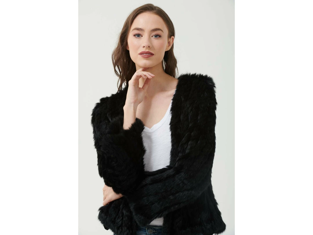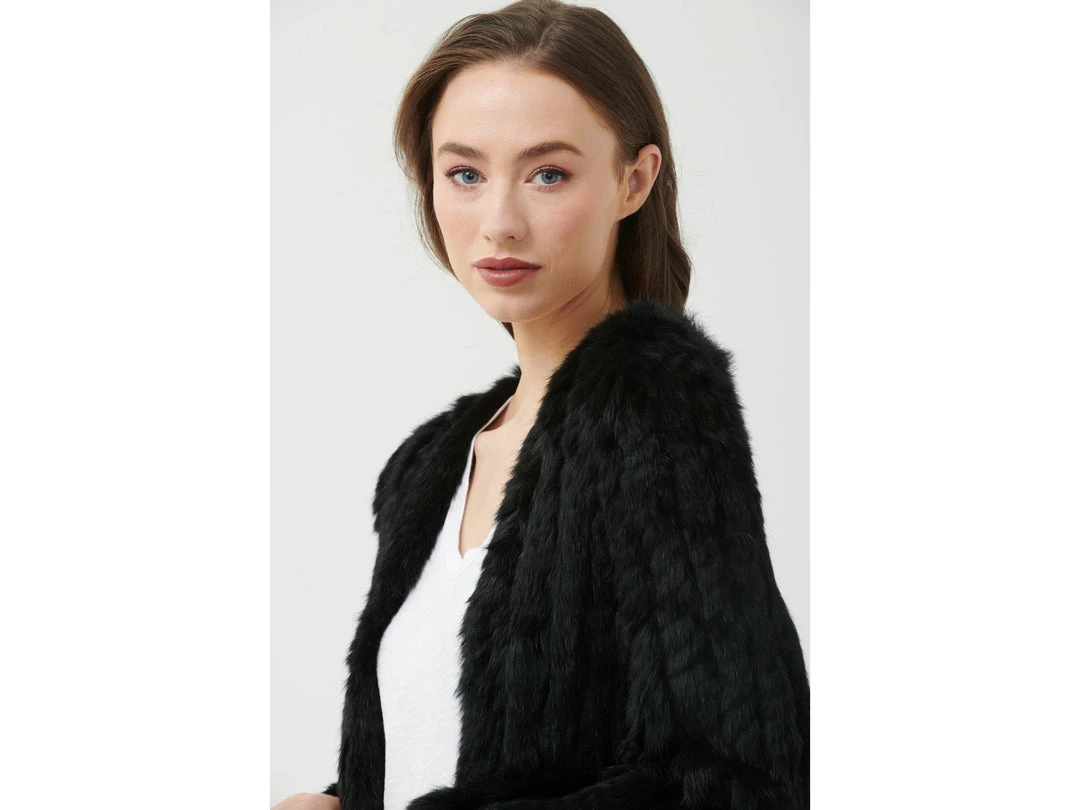 A must have in the winter wardrobe, this Luxurious fur jacket is cozy & warm during the colder months. Featuring Rabbit fur with a knitted lining giving it a generous & comfortable fit,