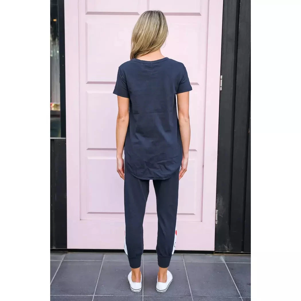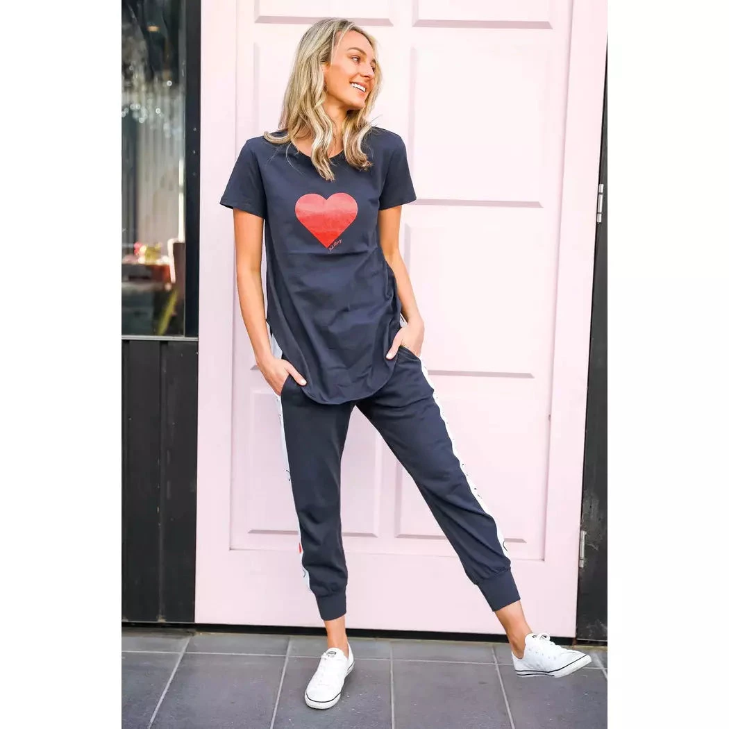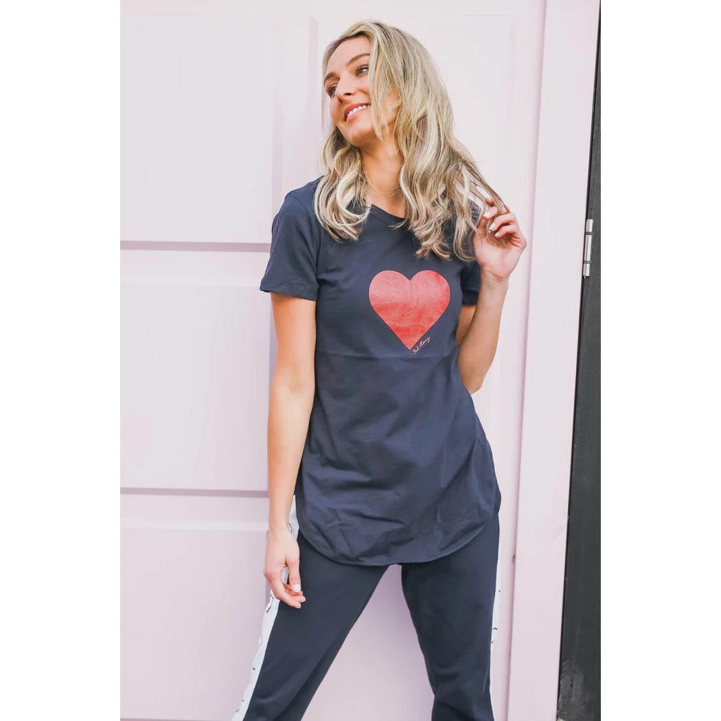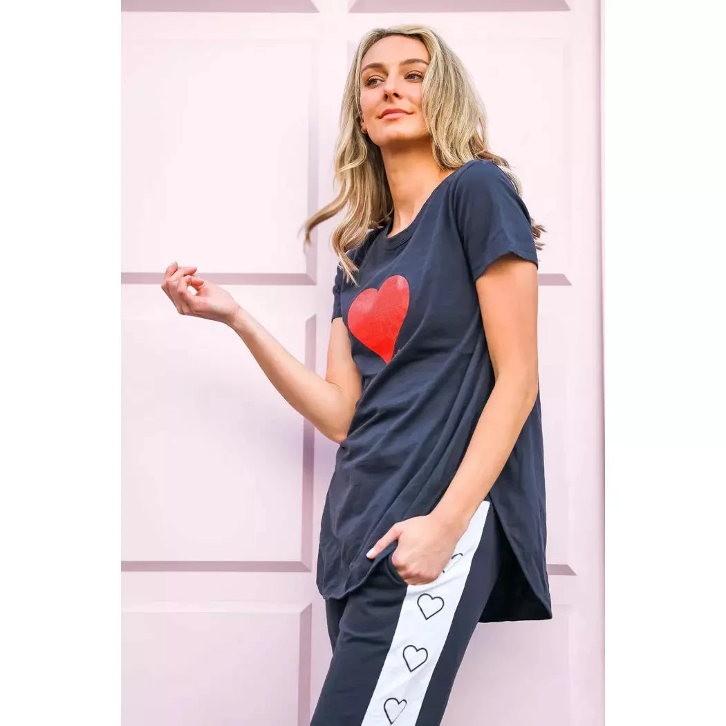 Cut from pure cotton jersey in a loose-fitting silhouette and drop curved hem, this ink t-shirt is framed by a relaxed crew neckline and short sleeves. We’ve finished the front with a sparkly heart motif for a cool touch. It’s the perfect staple to build outfits around.