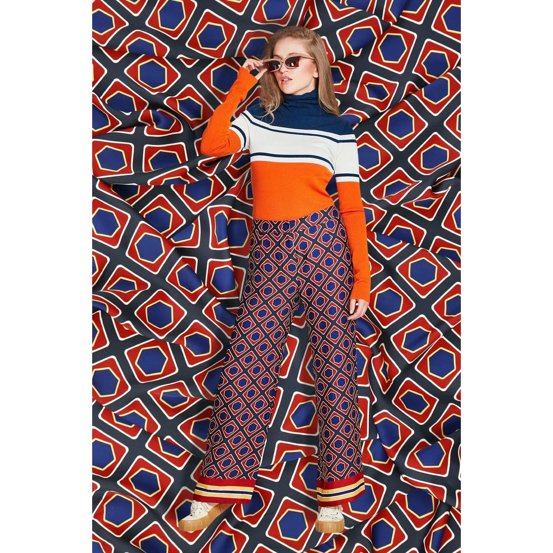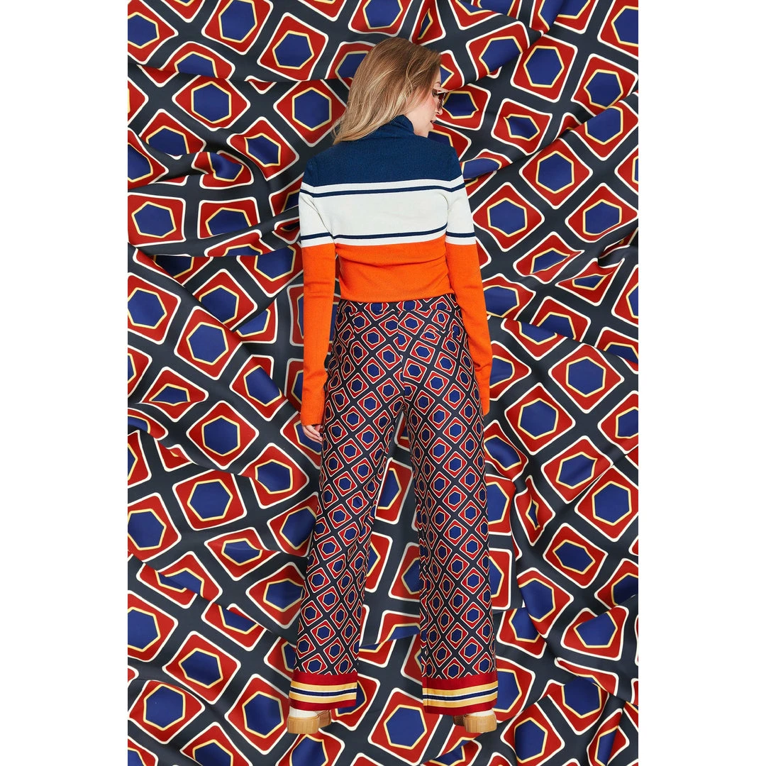 Designed in a ‘Print To The Finish’ recycled polyester. A modern take on a traditional suiting style. These bold geometric printed trousers feature, a fitted waist and stripe detailing at hem. Match with the ‘Wild Thing’ shirt for the ultimate luxury meets comfort everyday look.