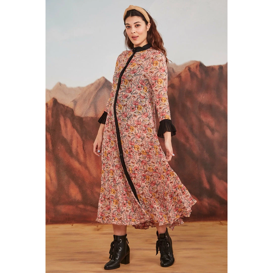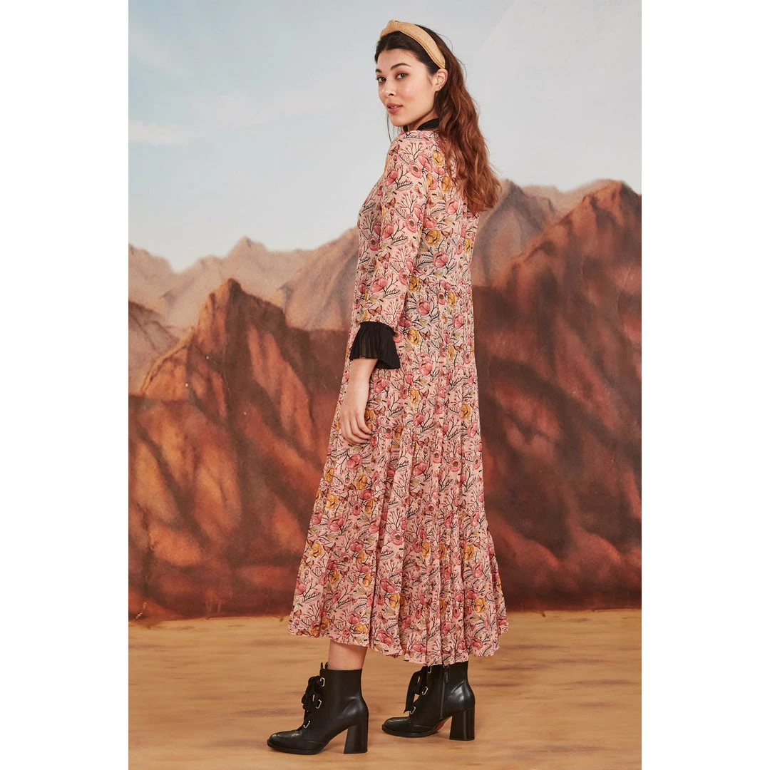 The classic Curate ‘In The Long Dress’ is back again this season, in stunning autumnal hues of pink with contrasting black pleated cuffs, neckline and button up front. This is a great layering piece which doubles as a lightweight duster coat.