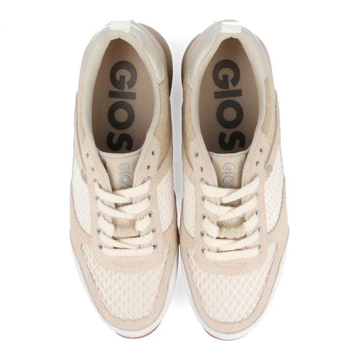 One of our favorites Sneakers with a mix of beige and white leather with fantasy materials. Rounded sole with a unique organic look with a slight wedge of cm. Perfect to be on the spotlight. Super comfy & light on the feet.
