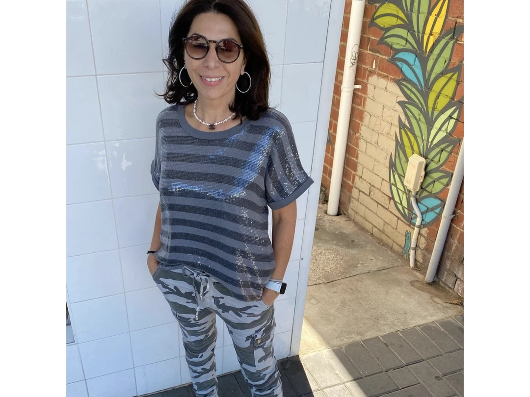 The Army Cargo Pants are the perfect wardrobe staple, versatile for all seasons. The Italian luxe pants feature an elasticated drawstring waistband, zip and button, side pockets, and a cuffed, elasticated bottom. The grey tones are perfect with any T-shirt or jumper and the perfect sneakers or slides.