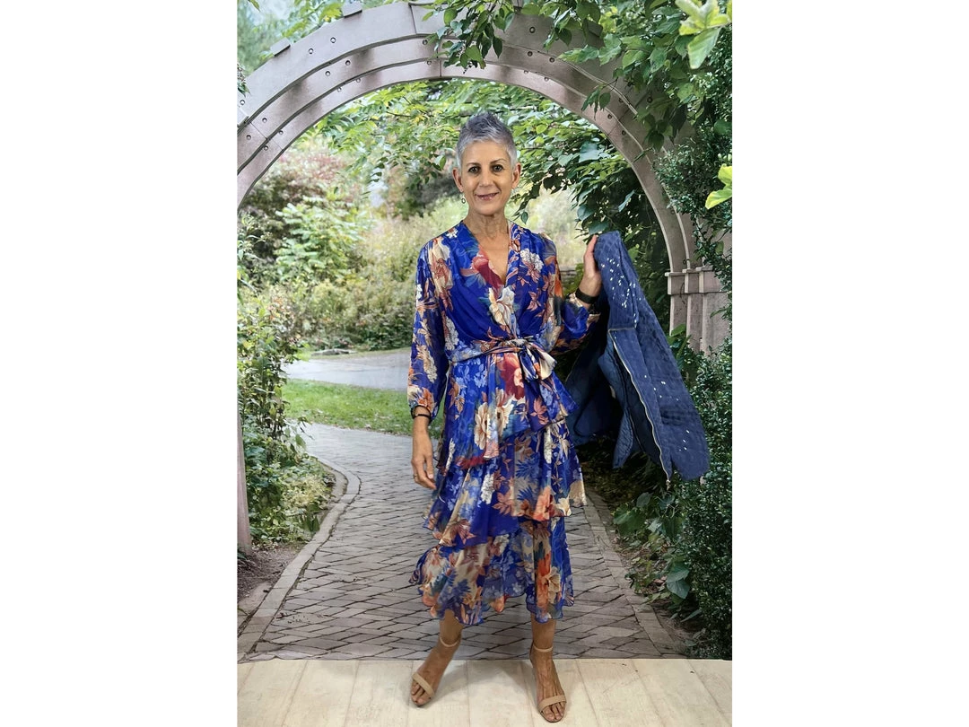 A Flattering silk dress for any body shape, features tiered layers, with batwing sleeve and tie waist. Combine the silky overlay and soft, supple jersey underlay, this is a dress that truly looks and feels luxurious. This stunning Print is the latest edition from La Strada