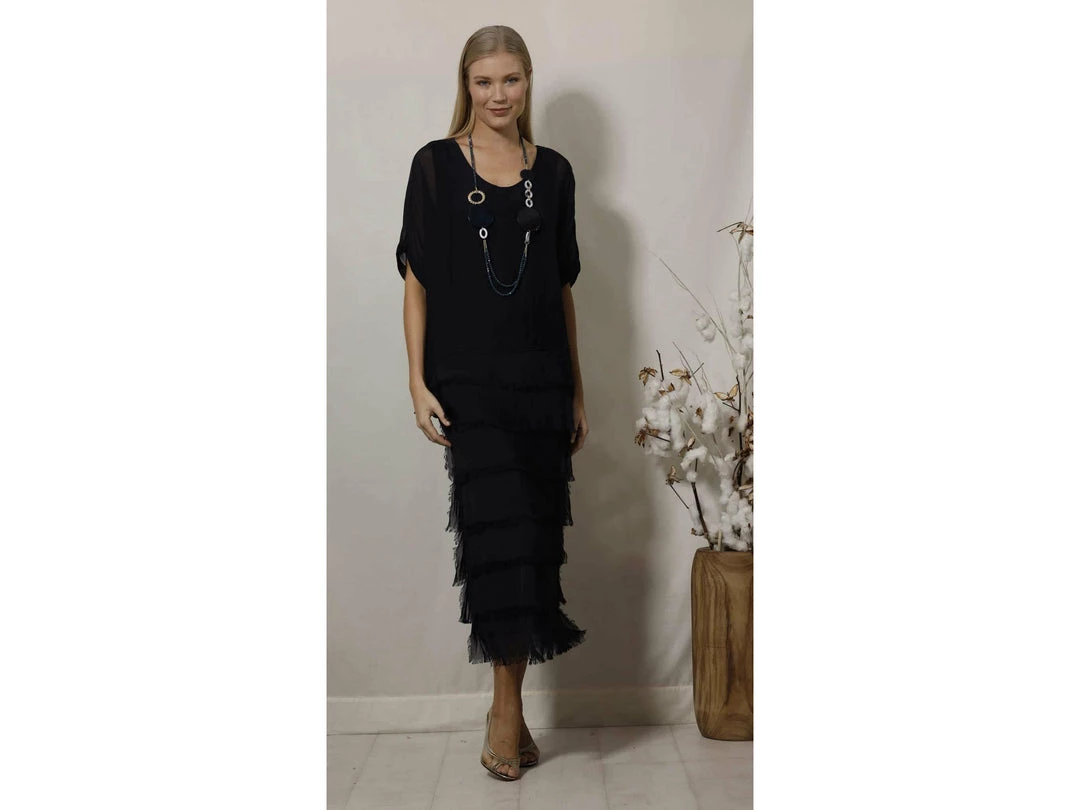 Dress up in style for your next party in La Strada’s easy drape layer dress. Featuring silky softness and comfortable stretch lining, this dress moves with you & all your dance moves