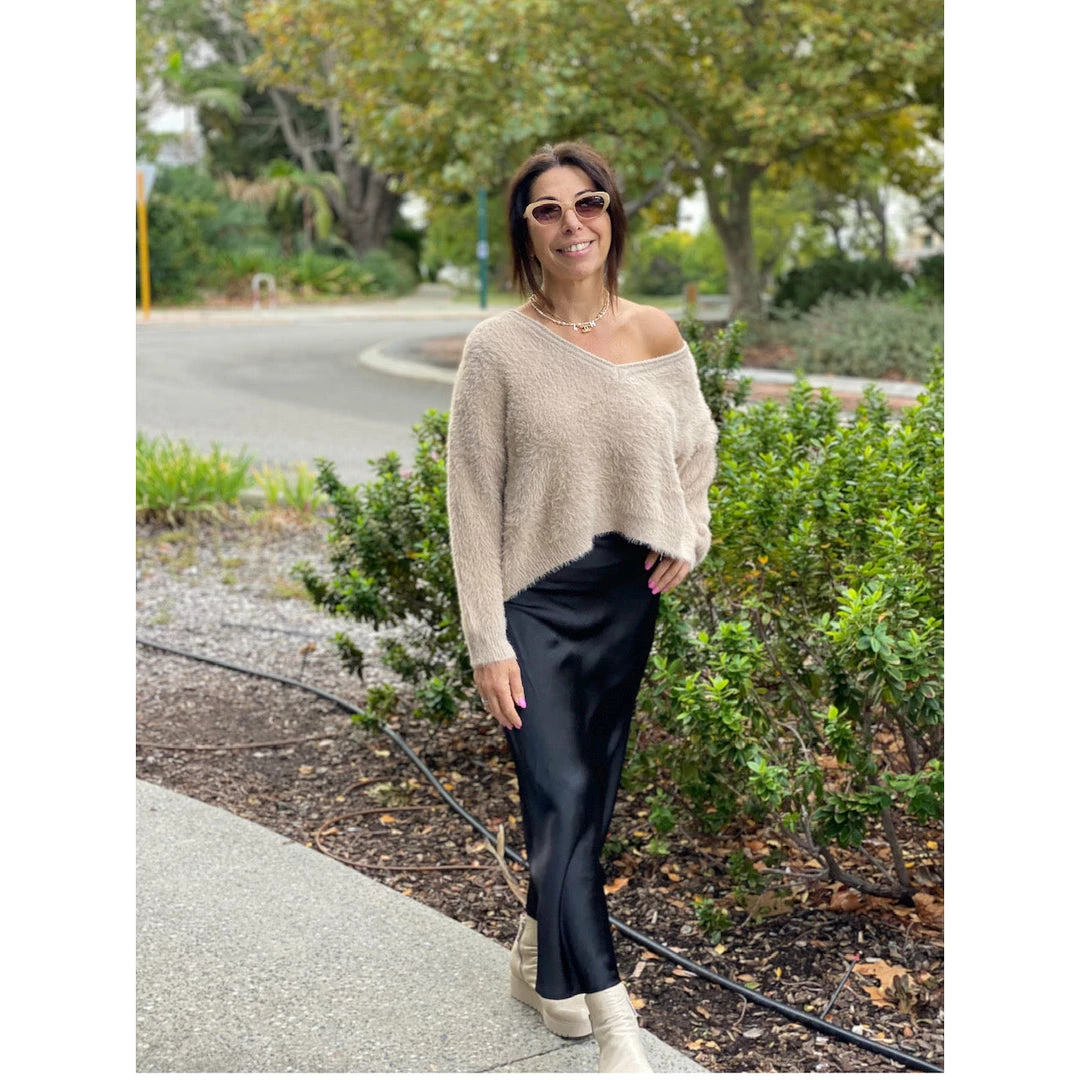 Whether you’re dressing up or down, you can never go wrong with aelegant Black skirt. This lustrous skirt is complementing to any figure with its bias-cut silhouette & length to below knee. A must for every wardrobe.