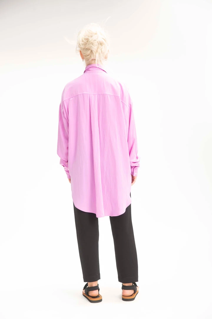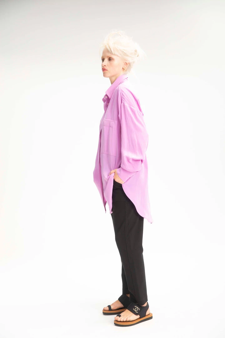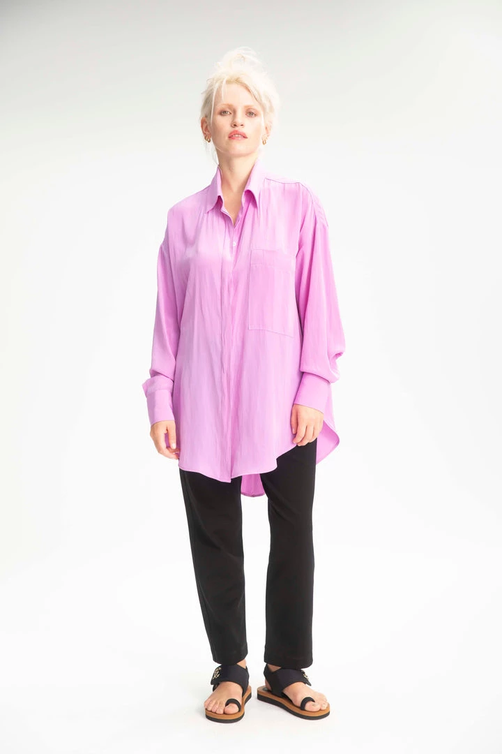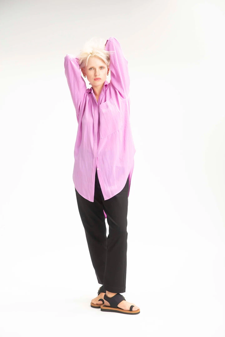 Cut from Mache, Mela Purdie’s luxurious fluid fabrication. The Relaxed Pocket Shirt is cut for a slightly loose fit that is comfortable and figure flattering, with a longer length and curved hemline, this style features a single soft patch pocket, shirt collar and full length sleeves.