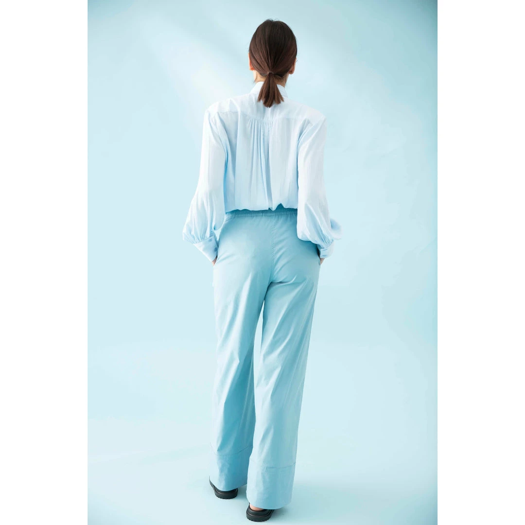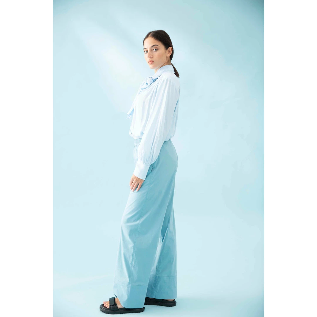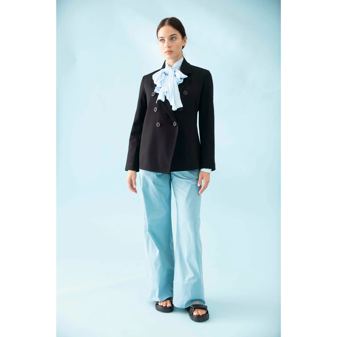 Crafted from Mela Purdie’s fluid Mache, the Scarf Neck Blouse is sophisticated, with a stand collar and concealed button placket. The blouse is finished with a beautiful draping tie at neckline and lightly gathered sleeve with wide nipped-in cuffs to create subtle blouson sleeves.