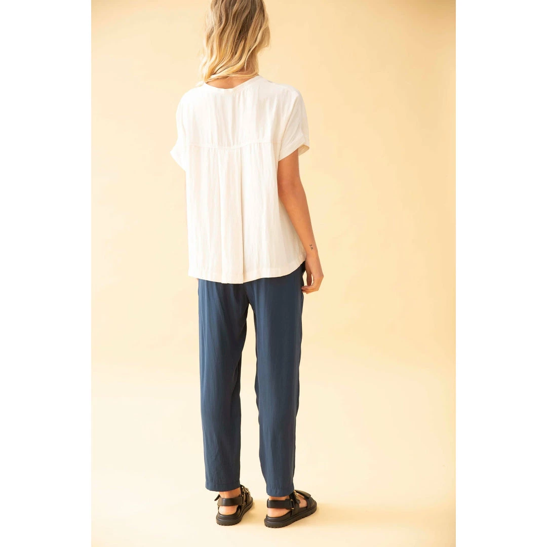 Crafted from Mela Purdie’s fluid Mache, the Soft Capri are slightly cropped in length and cut for tapered fit through the leg, with an elasticised waist and side entry pockets.