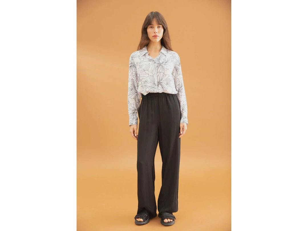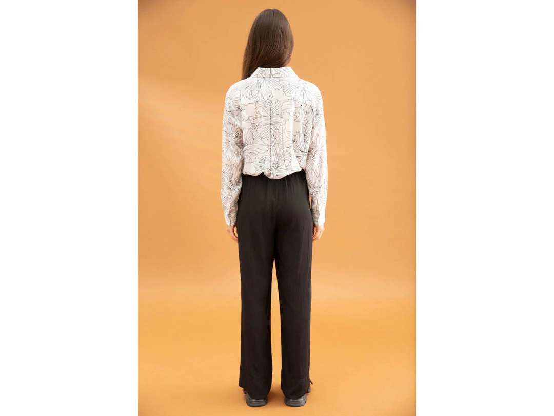 Silk Crepe De Chine is Mela’s luxuriously lightweight printed Silk, boasting a sumptuous soft handle, matte surface and beautiful drape. Gauguin Floral Silk is rich and beautiful, available Black floral in a creamy Birch. The Soft Shirt features a classic shirt collar, concealed front button closure, back yoke with pleat detailing to ensure moveability and full length shirt sleeves with shirt cuffs.