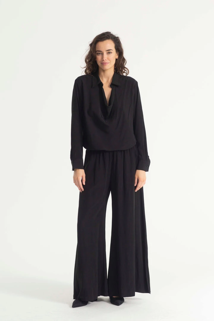 Crafted from Mela Purdie’s fluid Mache, the Swish Pant is your classic wide leg pant with a twist, this pant features side splits on the hem to encourage movement and subtle detailing. Featuring a pull on elasticised waist, the pant falls to a full length in a wide leg silhouette.