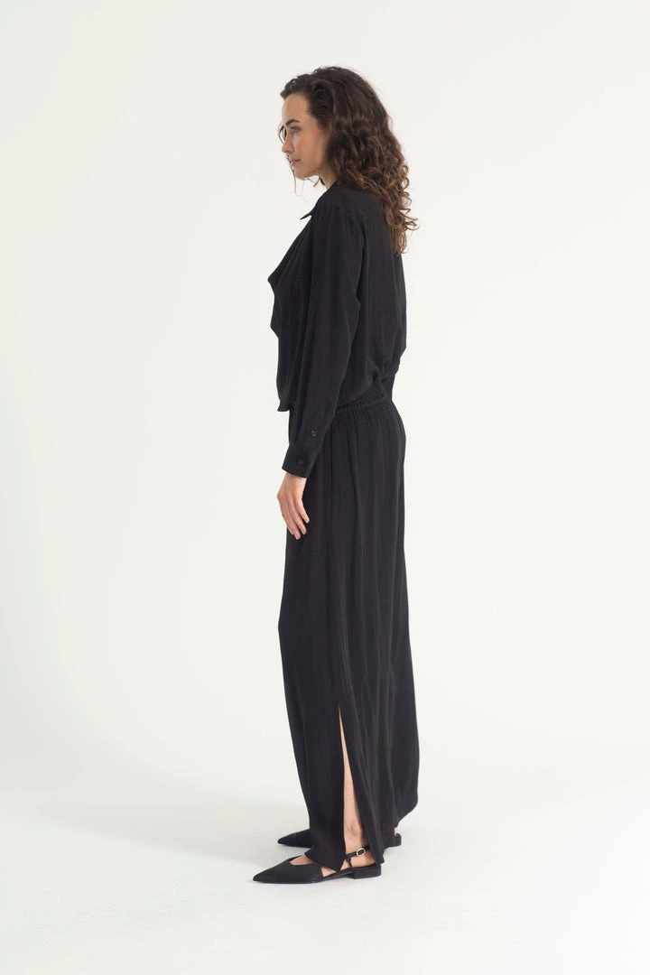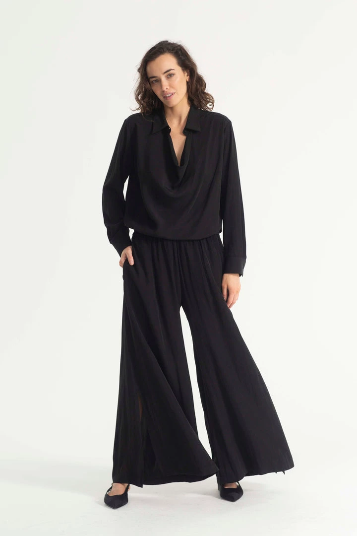 Crafted from Mela Purdie’s fluid Mache, the Swish Pant is your classic wide leg pant with a twist, this pant features side splits on the hem to encourage movement and subtle detailing. Featuring a pull on elasticised waist, the pant falls to a full length in a wide leg silhouette.