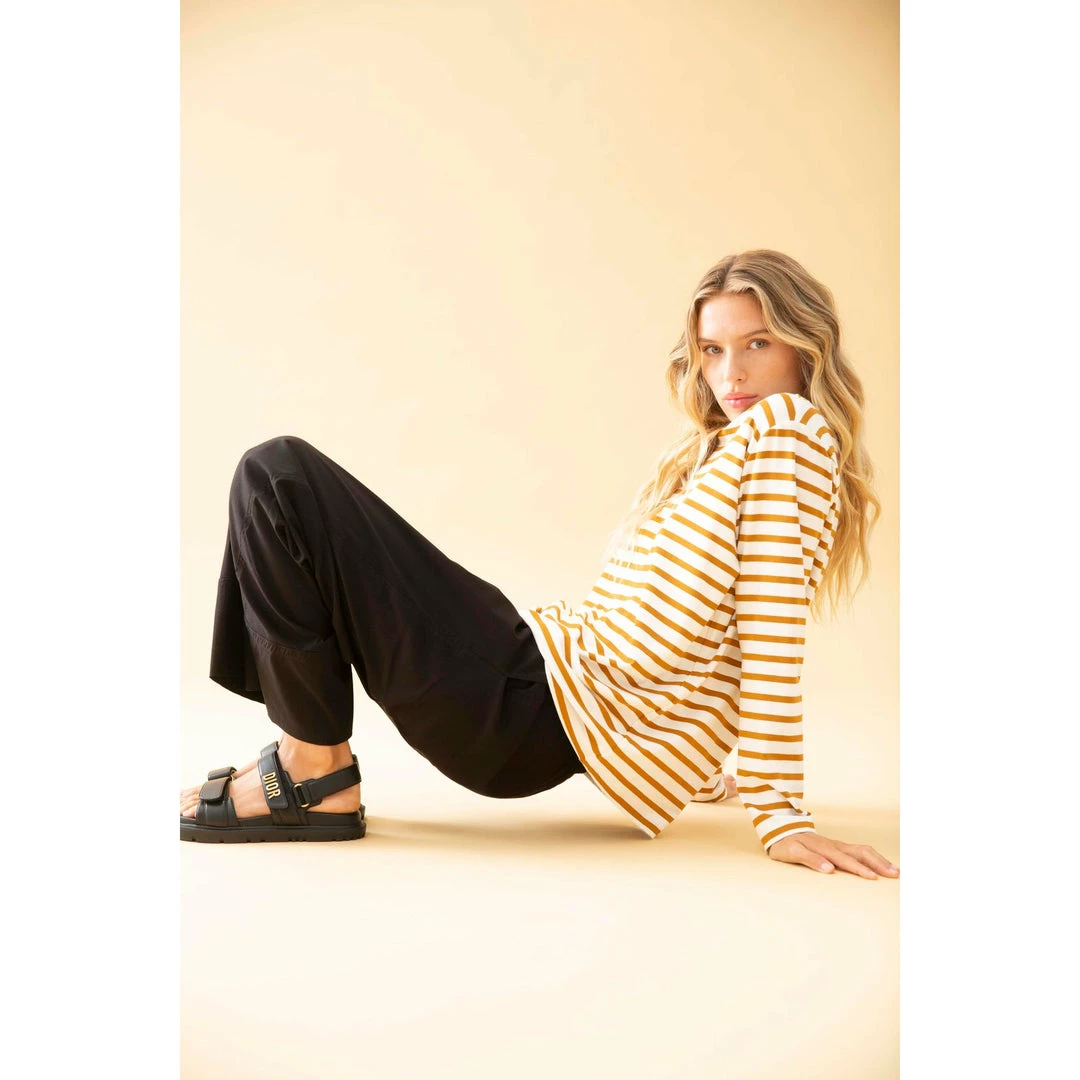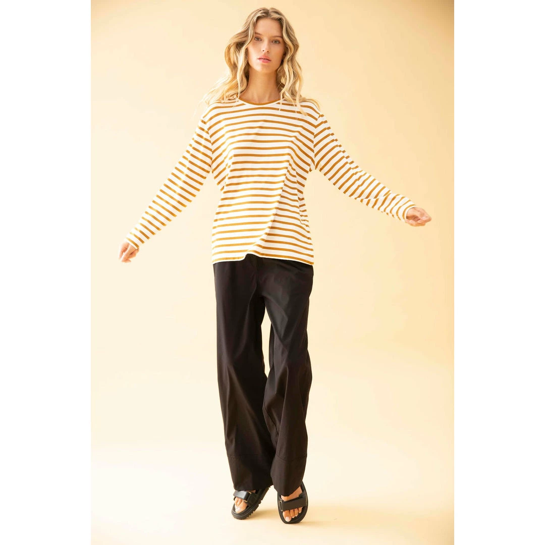 Cut from Mela’s Fondant Stripe in Matte Jersey, this knit will elevate and bring structure to any outfit. The crew-neck, full length sleeve Flat Top is cut for a relaxed and comfortable fit, perfect paired with a slim-leg pant.