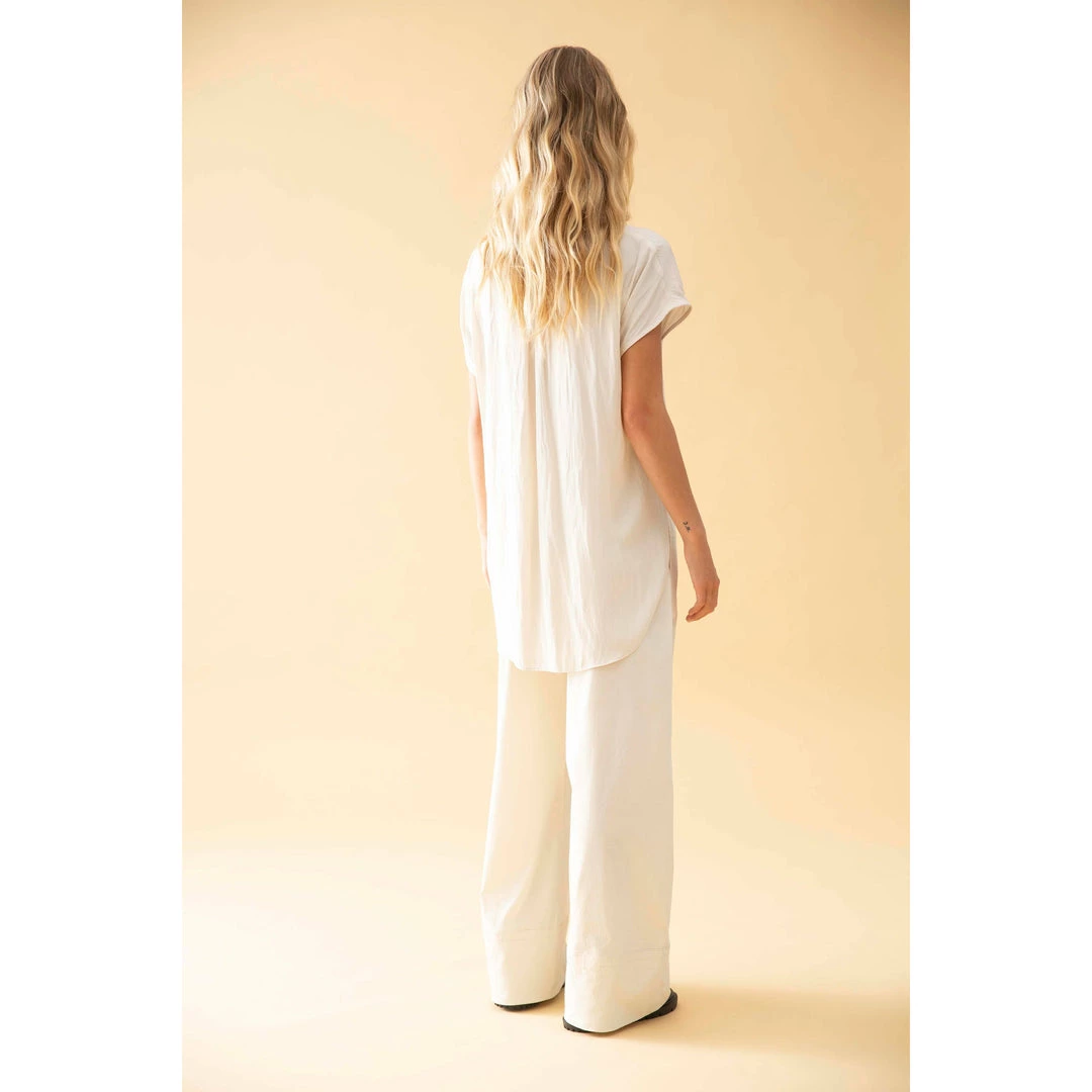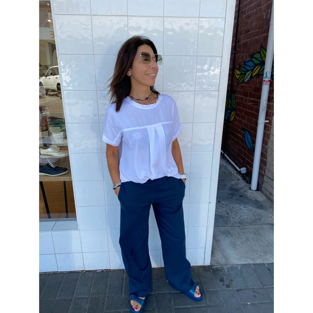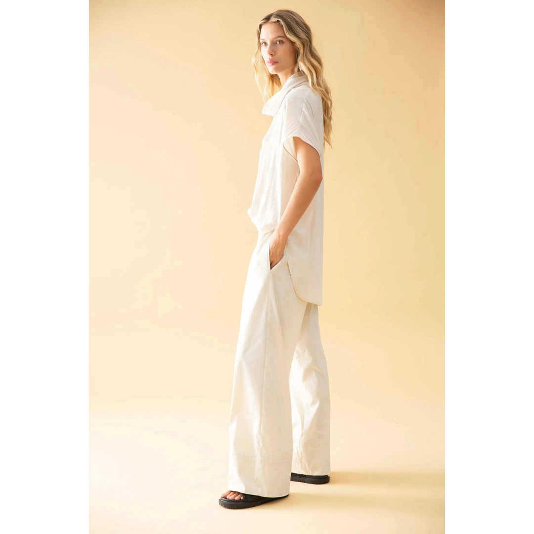 Crafted in Mela Purdie’s exclusive French stretch cotton blend Microprene. The Walker Pant is cut in a wide-legged, full length silhouette with side entry pockets and elasticated waistband. The generous cuffed hem compliments the relaxed fit of these pants.