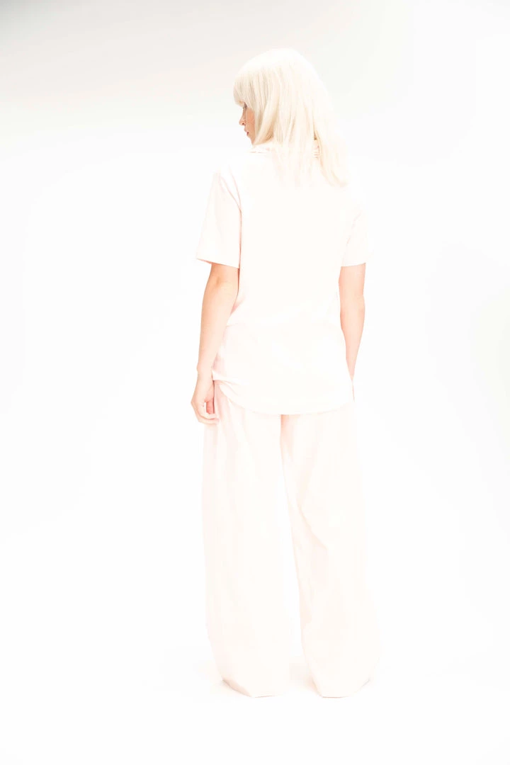Cut from Mela Purdie’s exclusive French stretch cotton blend Microprene. The Walker Pant is cut in a wide-legged, full length silhouette with side entry pockets and elasticated waistband. The generous cuffed hem compliments the relaxed fit of these pants.