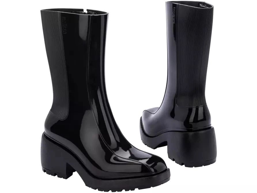 The Melissa Nancy Boot., As you would expect are made for walking, and have a retro, 60’s feel, with a size zip and foam platform sole and heel. At mid-length, splashing through puddles has never been so glamorous!
