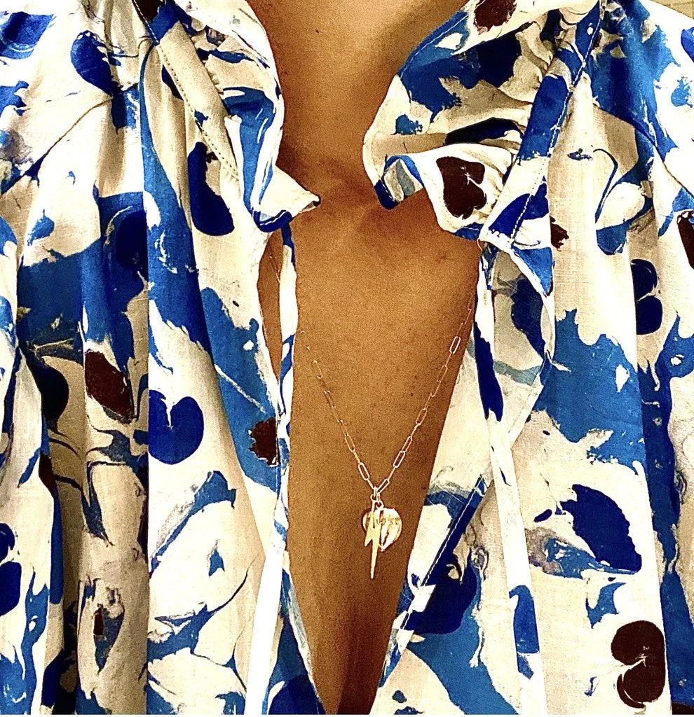 This stunning long chain with our heart and lightening bolt charm makes a great statement piece on any neckline. Available in 14k Gold Filled. Length is 19 inches at its longest on a fully adjustable-to-any-length chain.
