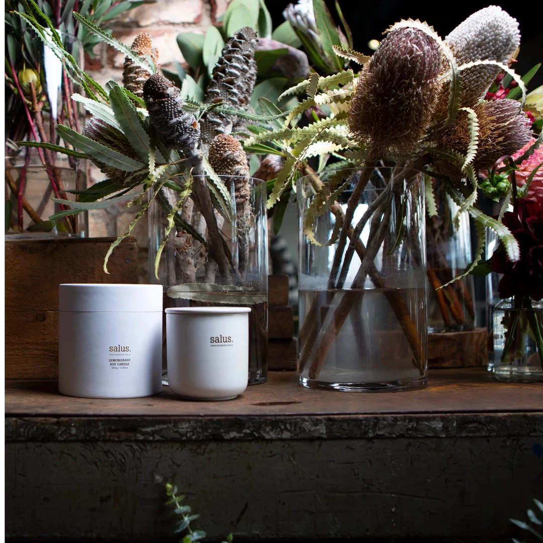 A refreshing blend of vibrant oils and natural soy wax to clear the mind and exhilarate the senses. Formulated with pure essential oils of lemongrass, lime, lemon myrtle, peppermint and eucalyptus.