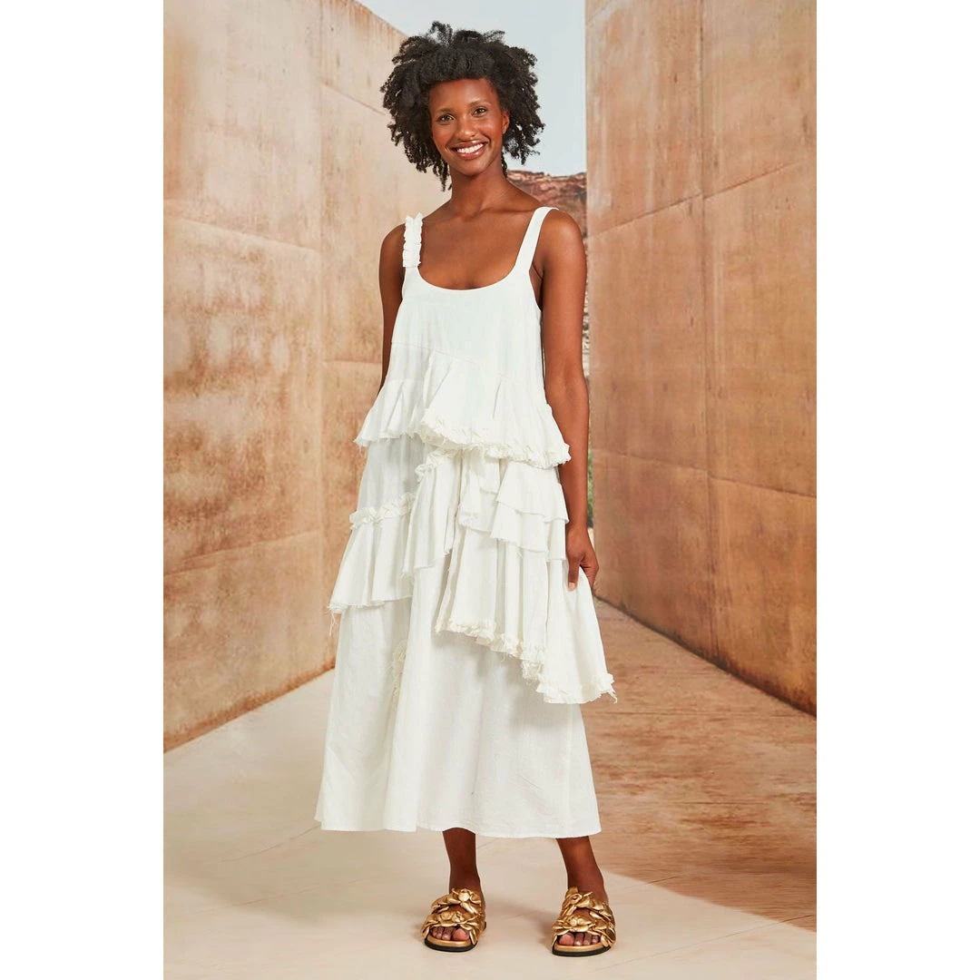 Revel in a “sunshine state of mind” in the ‘Long Days, Hot Nights’ dress. Designed in the ‘Linen It Up’ 100% linen, this dress features shoulder straps with ruffle detail and asymmetric tiered ruffle panels. Perfect for a daytime jaunt or evening soiree and in a selection of four colourways.